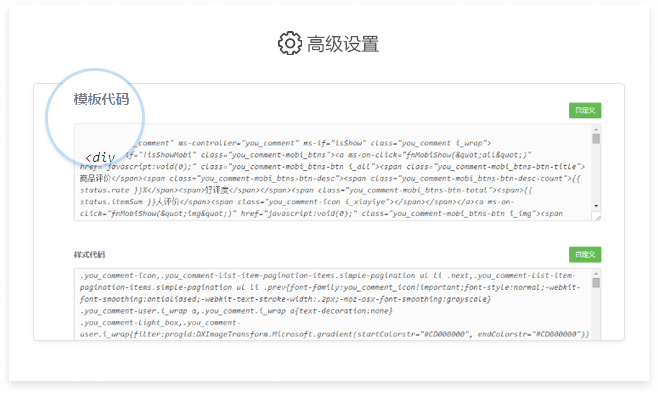 管理员头像设置、商品评价设置、买家评价设置、管理员自动回复设置、代码设置