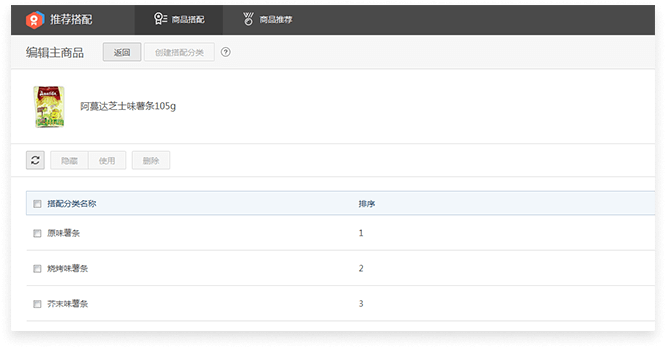 自定义商品搭配组合、多规则多表现形式的商品推荐功能